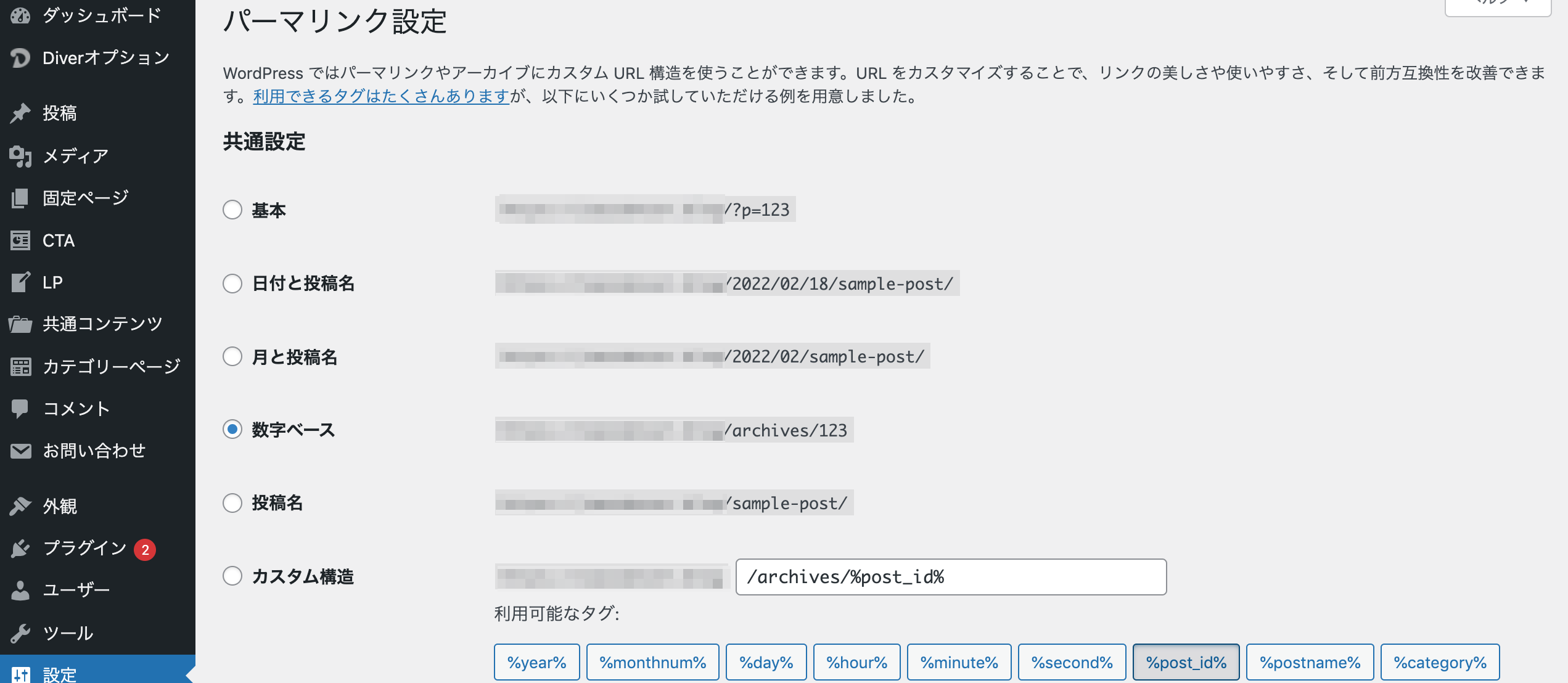 パーマリンクとは、投稿した記事ごとのURLのことです。パーマリンクは後からでも変更できますが、既存の記事URLがすべて変更されるため注意しましょう。