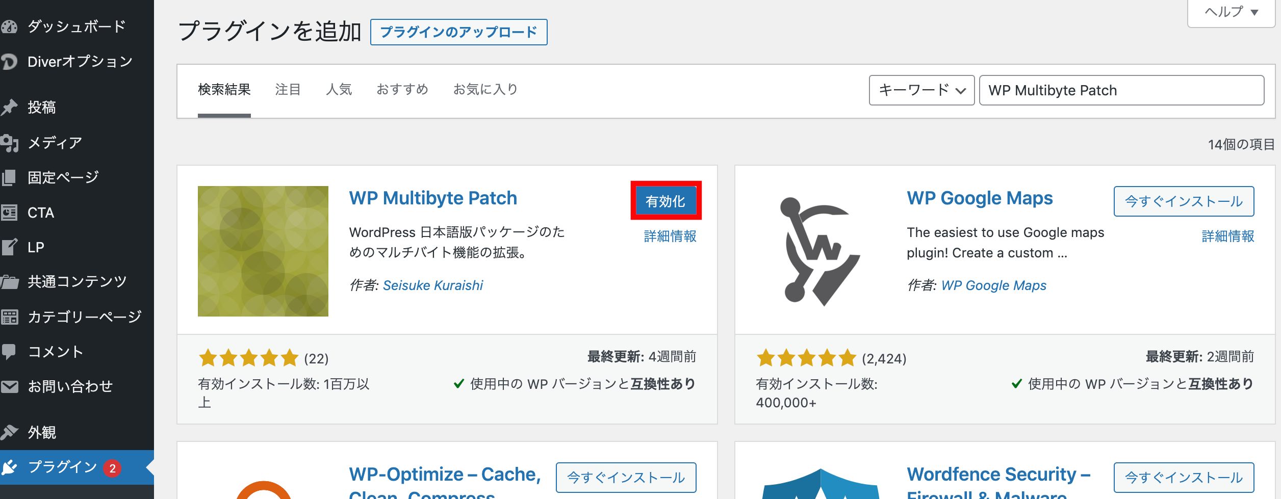 WordPressの標準言語は英語なので、まれに日本語の文字化けが起きることがあります。そのため、文字化けを防ぐために「WP Multibyte Patch」というプラグインを導入しましょう。
