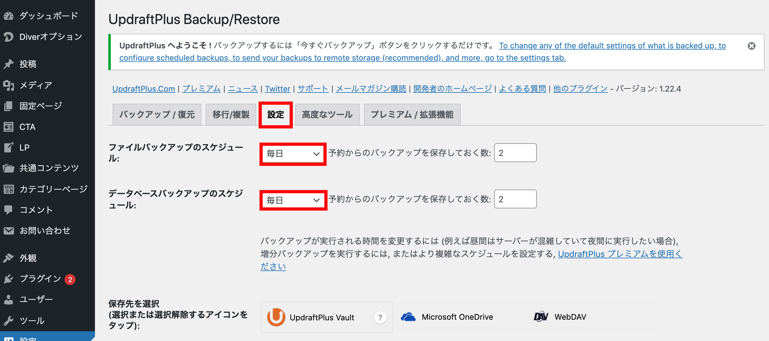 インストールが完了したら、プラグインの有効化を行います。有効化が完了したら、自動バックアップの設定を行っていきましょう。