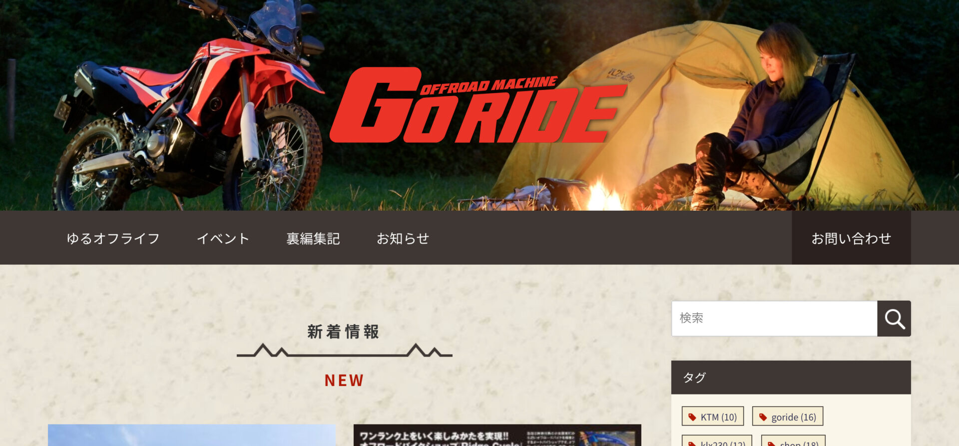 オフロードマシン総合誌『Go RIDE』を編集している「株式会社モト・ナレッジ」様のオウンドメディアを制作しました。「雑誌の宣伝もかねて、いつでもどこでも楽しめるオウンドメディアが欲しい」とのご相談をいただき、ターゲットに合ったデザインをご提案しました、