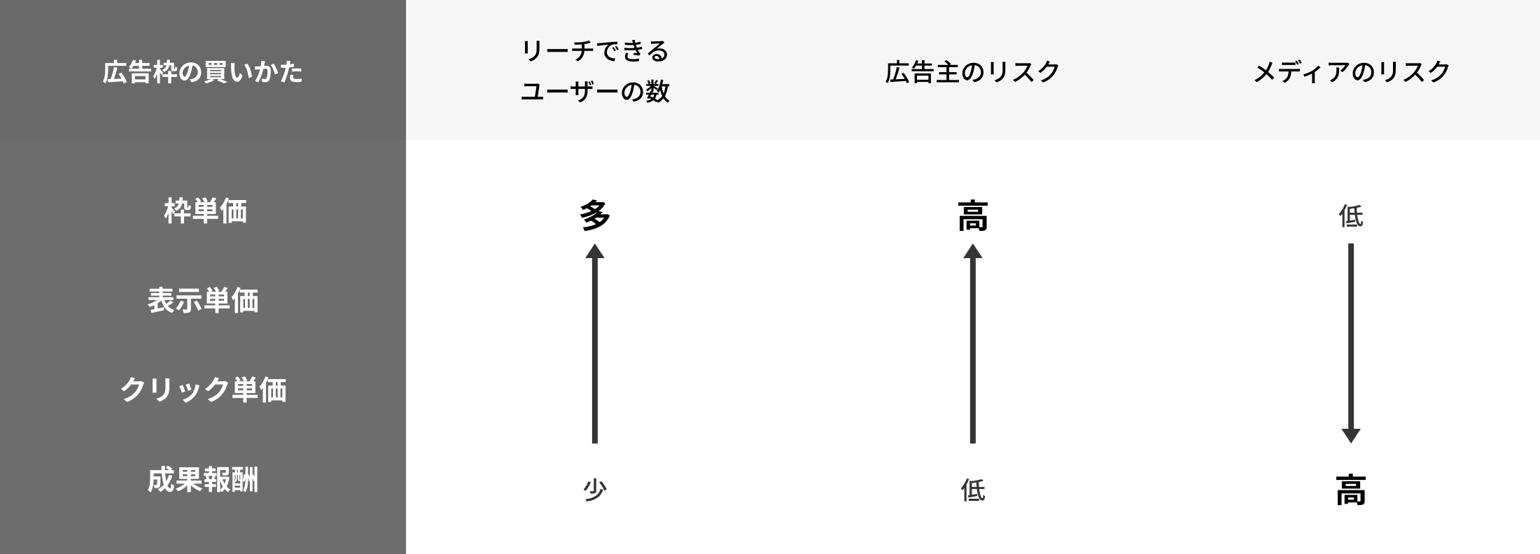 広告主のリスクを可能な限り低くする事を念頭においたマーケティング戦略・広告媒体選定をご提案します。