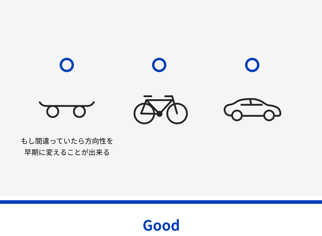 もし上手くいかければすぐに軌道修正できるので成功確率が上がる。
